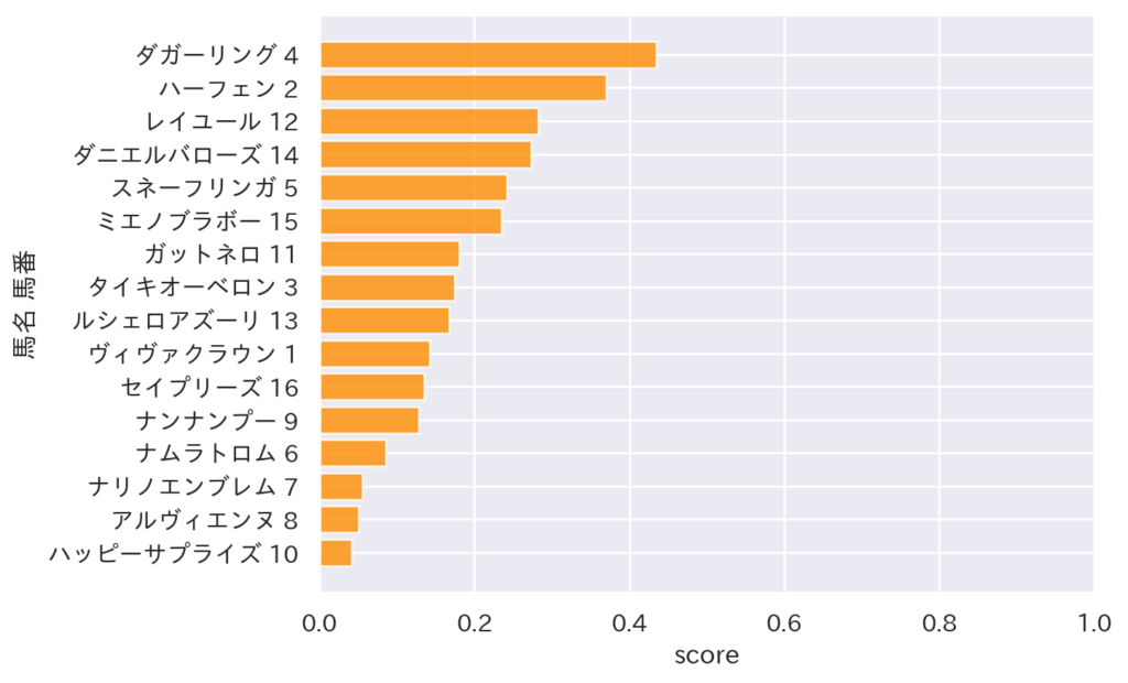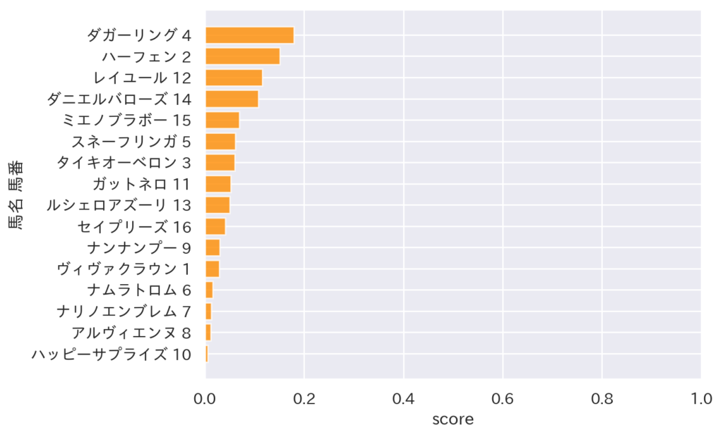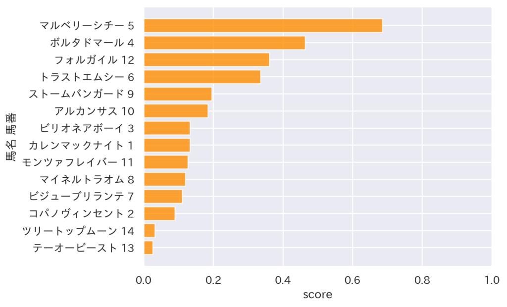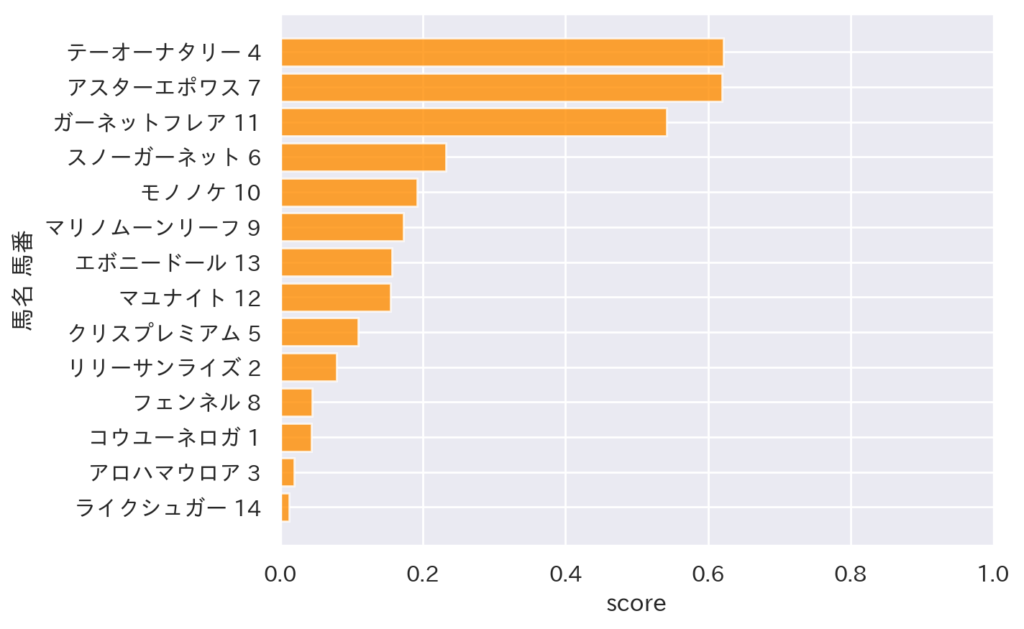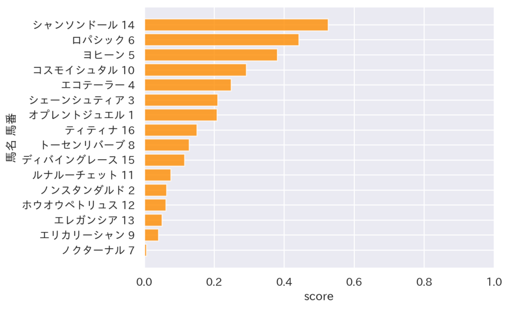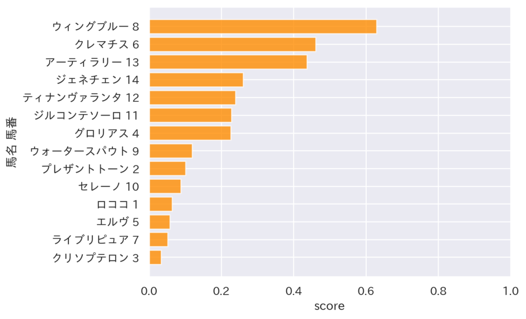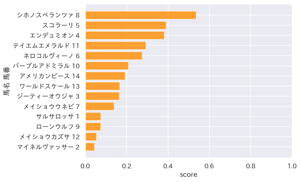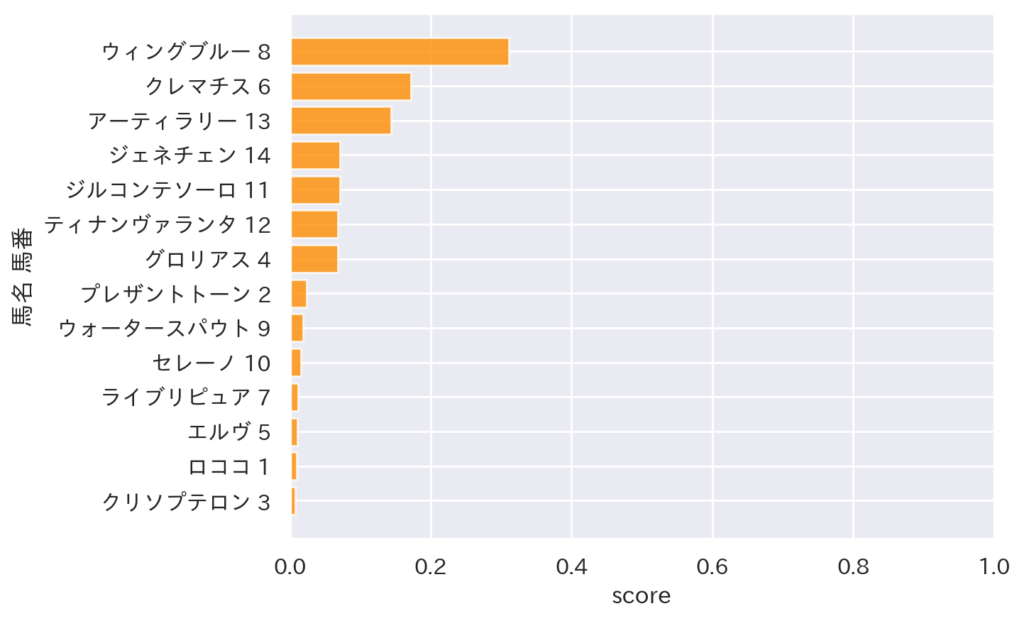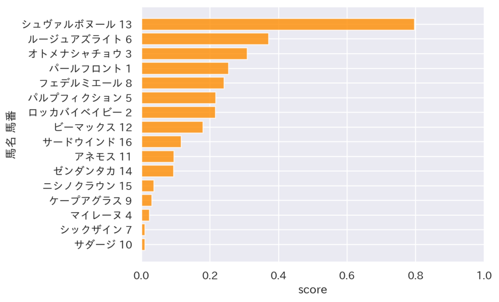| 13 | シュヴァルボヌール | 三浦皇成 | 0.797112 | 0.476945 | 1.5 | 1.3 |
