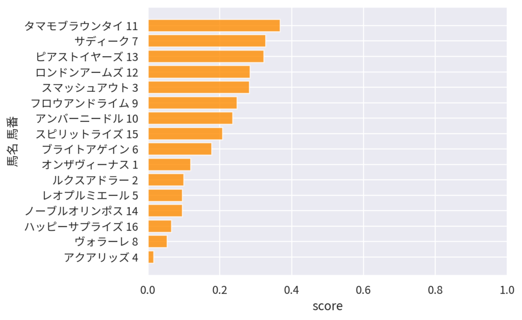 | 16 | アイアムイチバン | 柴田善臣 | 0.235726 | 0.082881 | 8.9 | 3.3 |