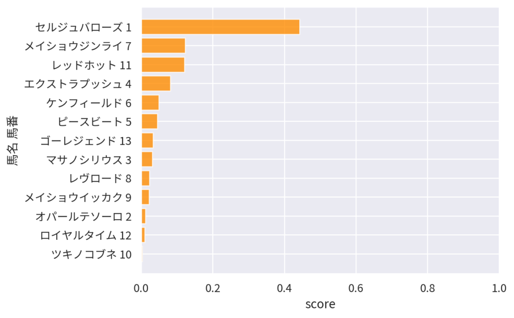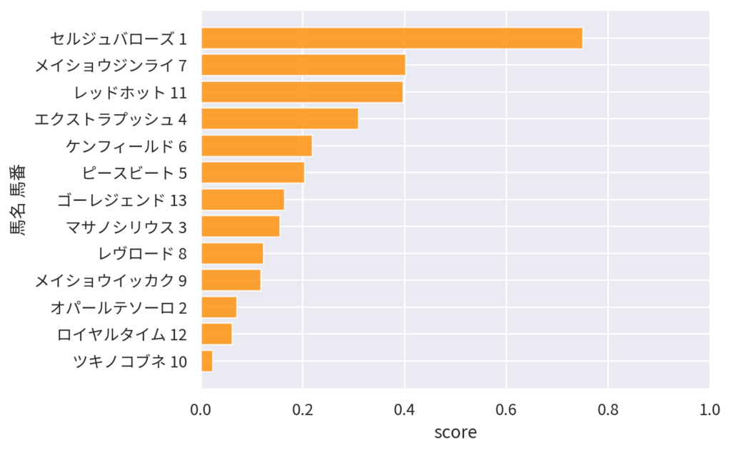 | 12 | ダノンプレサージュ | 横山典弘 | 0.296315 | 0.107613 | 6.9 | 2.5 |