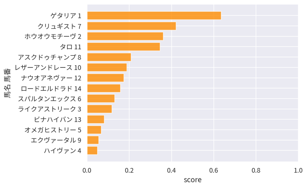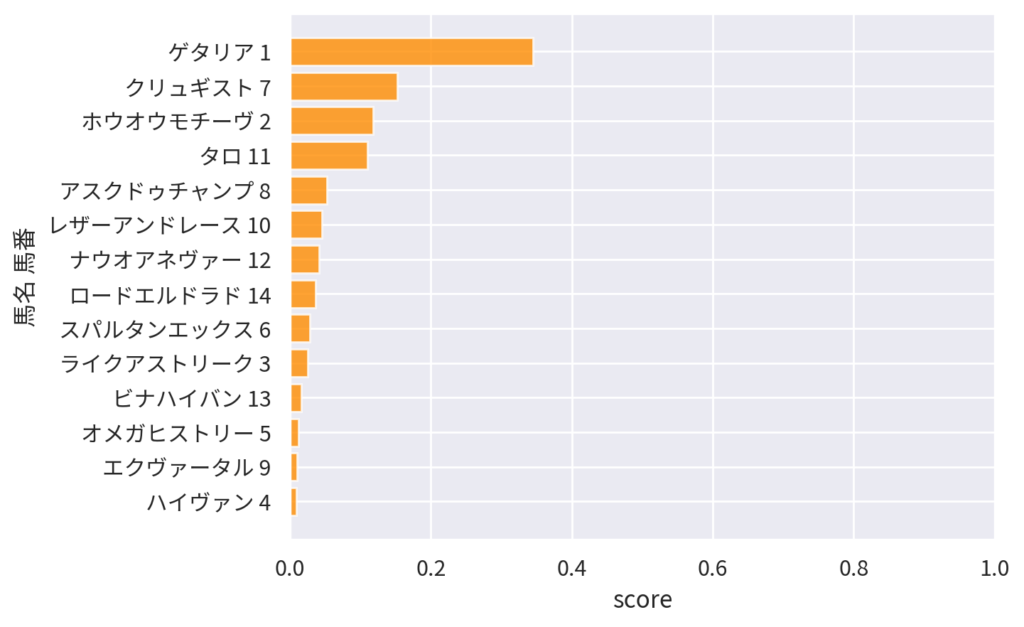 | 14 | フウセン | 武豊 | 0.311913 | 0.095480 | 7.7 | 2.2 |
